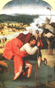 Der Heilige Christophorus ist ein Märtyrer und einer der Vierzehn Nothelfer. Er wird meist als Riese mit einem Stab dargestellt, der das Jesuskind über einen Fluss trägt. Historisch Dokumente über den Heiligen liegen zwar nicht vor, jedoch wird ein authentischer Kern der Existenz eines frühchristlichen Märtyrers weiterhin angenommen (siehe: Martyrologium Romanum, 25. Juli).