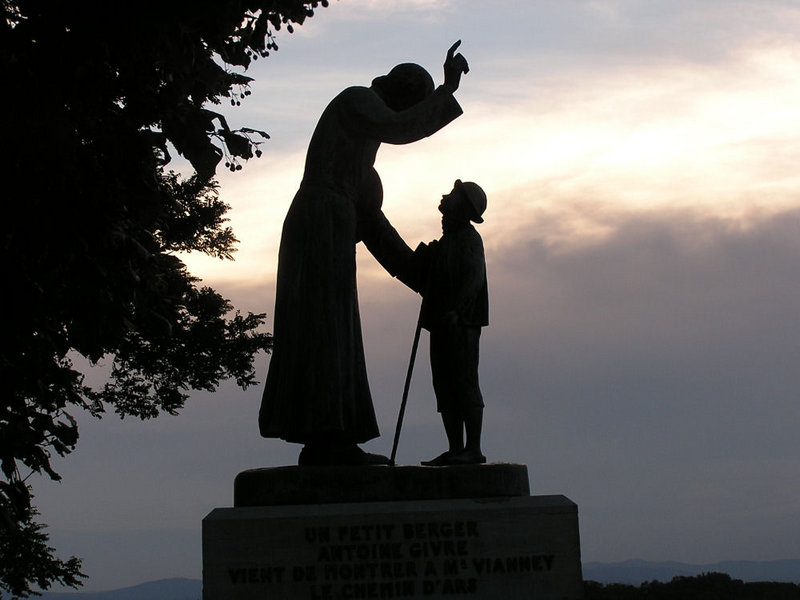 - Bildbeschreibung: Ars - August 2004, Das Bild zeigt die Begebenheit, als der Pfarrer von Ars auf dem Weg zu der neuen Pfarrstelle Ars einen Jungen um den Weg nach Ars frug. Wenn er ihm den Weg zeige, zeige er ihm den Weg zum Himmel. Analog ist das Bild für den Zölibat (um des Himmelreiches willen) passend.