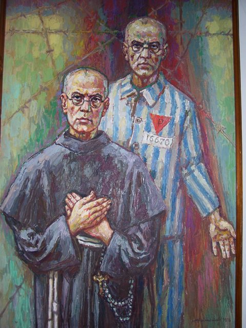 Maximilian Kolbe als Minoritenpater und als KZ-Häftling - Bild im Museum der von Maximilian Kolbe gegründeten "Stadt der Unbefleckten" bei Warschau; (Fotograf: www.totus-tuus.de Lizenz: Creative Commons Licence)