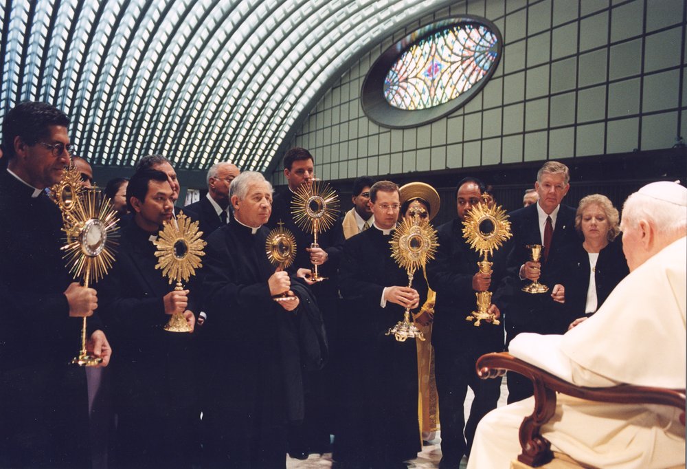 - Bildbeschreibung: Papst Johannes Paul II. segnet im Jahre 2004 Berufungsmonstranzen
