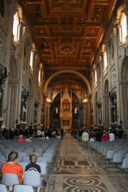 Die Kirche, die 130 Meter lang ist, wirkt auf dem ersten Blick etwas kühler und weit schlichter als die anderen Patriarchalkirchen. Von den fünf Eingängen ist der Eingang ganz rechts die Porta Santa, die nur in heiligen Jahren geöffnet wird.