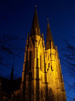 Gründung Liudgers vor 800. Die ehem. Abteikirche des Klosters Werden ist heute Basilika Minor und Propsteikirche mit dem Grab Liudgers.