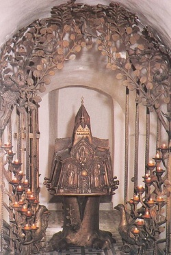 Angeblicher Ort der Aufbahrung Liudgers. In direkter Nähe, wo heute der Paulus-Dom steht, gründete Liudger um 800 ein Kathedral-Kloster.