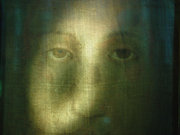 Ein anderes völlig rätselhaftes Phänomen besteht in der Tatsache, dass das Bild von zwei Seiten vollkommen sichtbar bleibt, von vorne und von hinten, nur seitenverkehrt, obwohl es in sich selbst so transparent ist, dass man eine Zeitung dadurch lesen kann. Im Gegenlicht verschwindet es hingegen vollkommen; dann wird es so durchsichtig wie eine Fensterscheibe. Neueste Erkenntnisse deuten darauf hin, dass es sich bei dem Gewebe um Muschelseide handelt, dem teuersten und fast schon verschollenen Stoff der Antike - der sich allerdings nur leicht färben, jedoch nie bemalen lässt. Muschelseide nimmt überhaupt keine Farben an.
