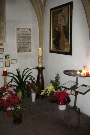 Das Bild einer knieenden betenden Nonne in der Grabkapelle der Heilig-Grab-Kirche ist nicht identisch mit dem Aussehen Columbas. Von Ihr existieren keine Portraits