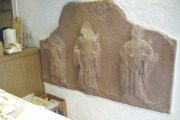 Der Überrest eines Reliefs mit Personendarstellungen befindet sich im Saal zur Verköstigung der Pilger.