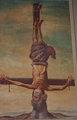 Nach einer alten Legende floh Petrus vor den Christenverfolgungen aus der Stadt, begegnete auf seinem Weg jedoch Jesus, der in die engegengesetzte Richtung ging. Auf die Frage des Petrus: "Wohin gehst du, Herr?" (Quo vadis, Domine?) entgegnete er: "Ich gehe nach Rom, um mich nochmals kreuzigen zu lassen." Beschämt kehrte Petrus um und nahm den Tod am Kreuz an. Weil er sich jedoch nicht als würdig ansah, auf die gleiche Weise wie Christus zu sterben, habe er sich kopfüber kreuzigen lassen.