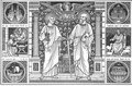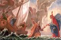 Schlüssel, Schiff, Buch, Hahn, umgedrehtes Kreuz