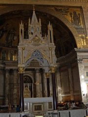 - Ziborium: Über den Papstaltar erhebt sich ein von vier Porphyrsäulen getragenes Ziborium (Von Arnolfo die Cambio geschaffen)